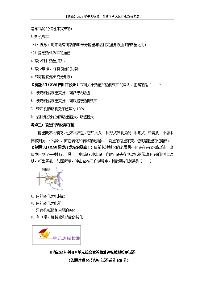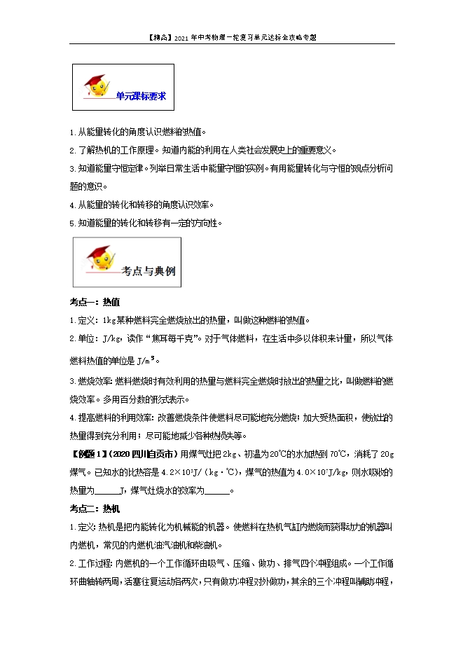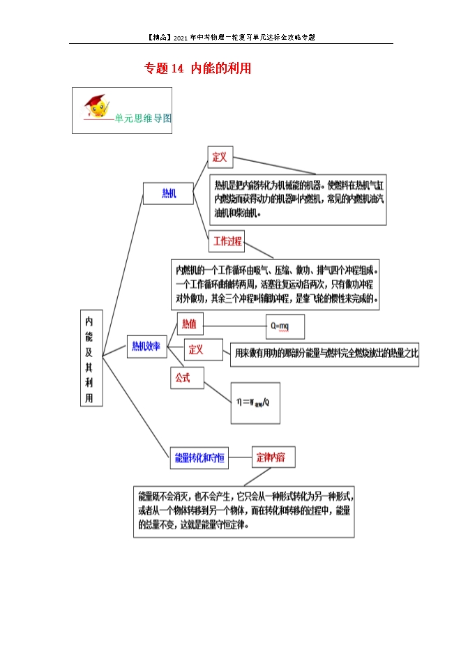 - 215【精品】决胜2020年中考物理压轴题剖析与精练:专题12 内能和热机(原卷版和解析版)