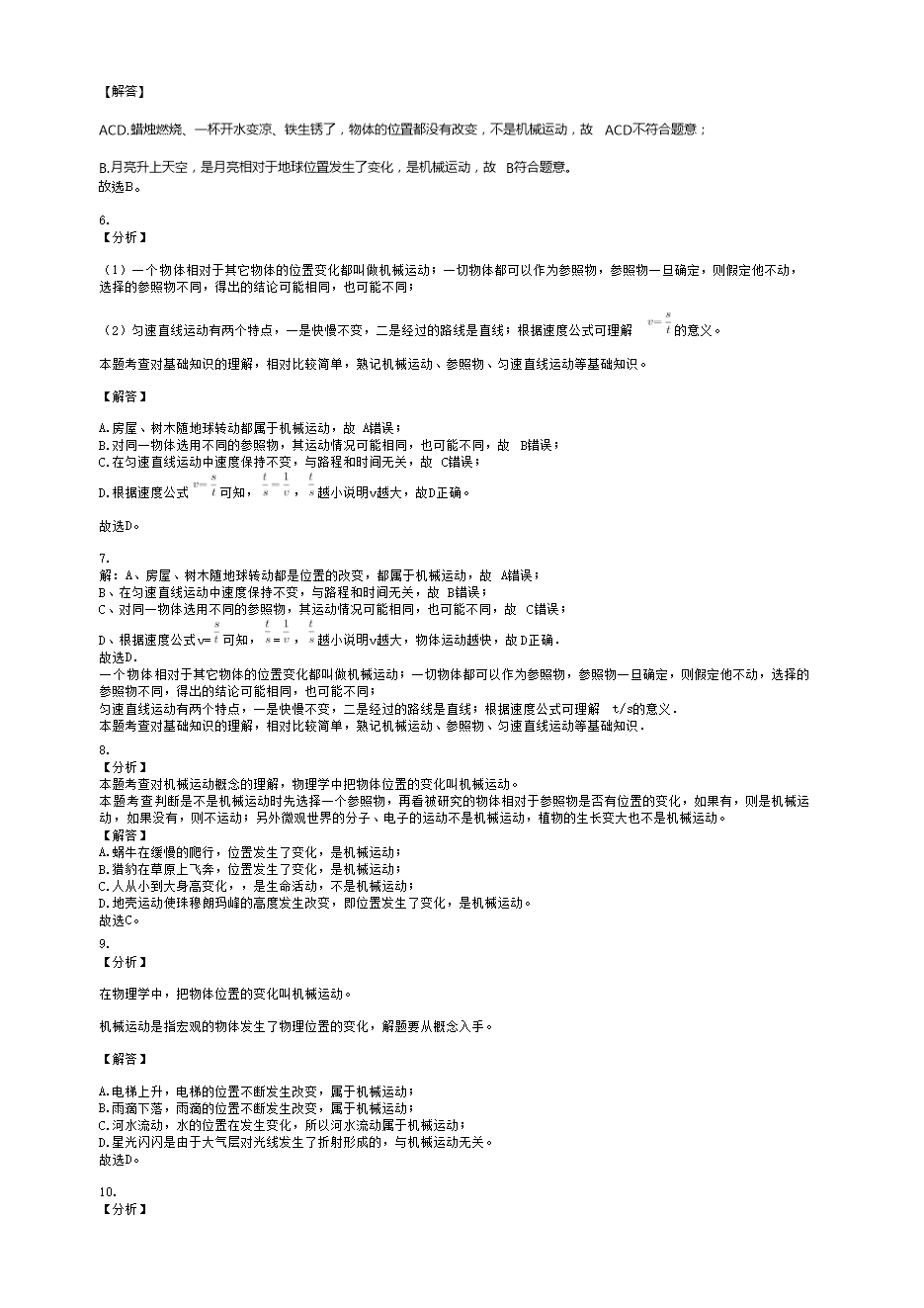 3. 根据机械运动的含义,下面说法中正确的是( )