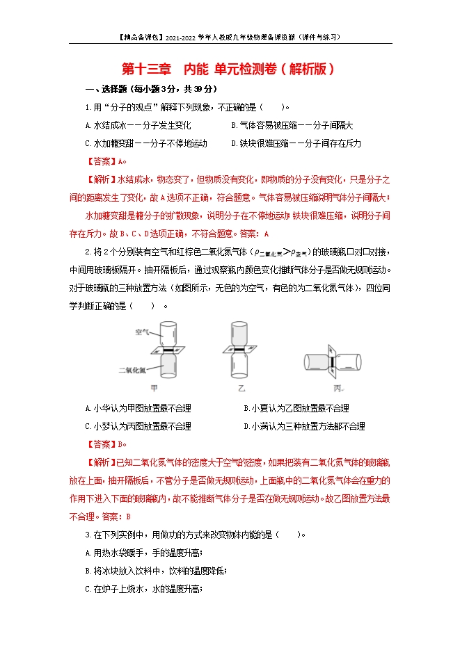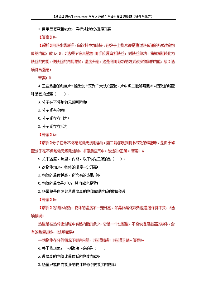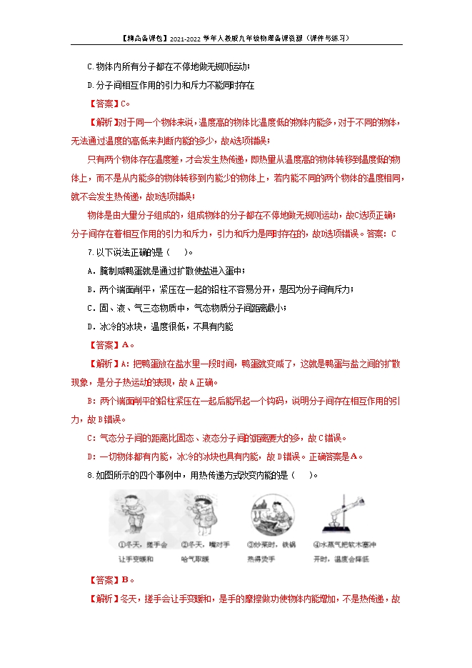 【内容简介】1. 下列四种现象中属于扩散现象的是 ( )