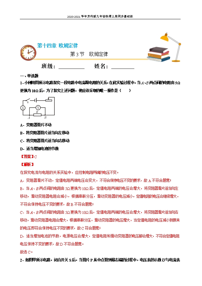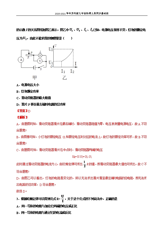 D.滑动变阻器阻值变化的范围是2.5~10Ω