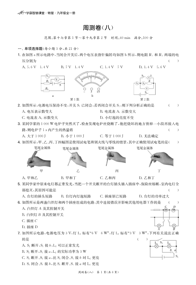 1.小丽同学触摸带电体时,她的头发就会竖起,你知道其中的道理吗?