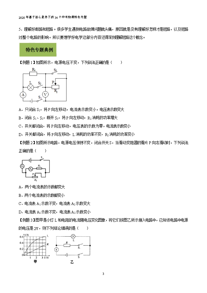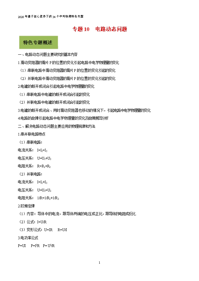 【内容简介】【打包】2020年基于核心素养下的34个中考物理特色专题(原卷版和解析版)