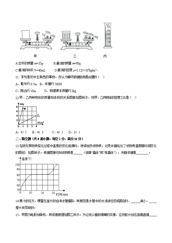 (人教版)2019-2020学年八年级上册物理精讲精练:期末考试核心素养检测试题(二)