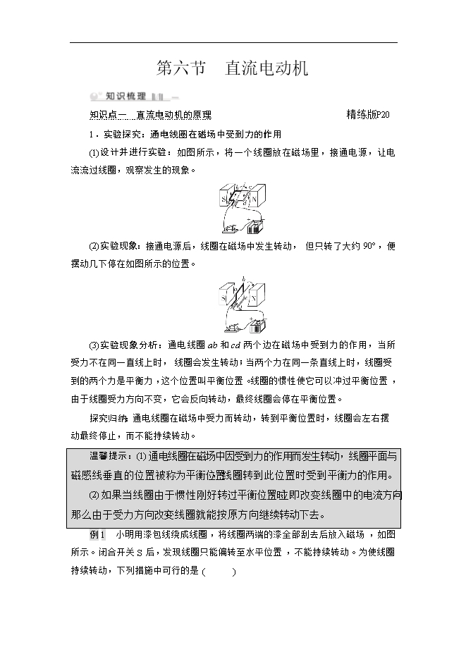【内容简介】探究点1 怎样知道大气有压强[阅读课本]P76~77“怎样知道大气有压强”[思考]将硬纸片平放在玻璃杯口,用手按住,并倒置过来,放手后,会看到什么现象?你能解释其中的原因吗?[提示]纸片在重力的作用下,掉了下来。[思考]将玻璃杯装满水,仍用硬纸片盖住玻璃杯口,用手按住,并倒置过来,会出现什么现象?你能解释其中的原因吗?[提示]硬纸片没有掉下,托住了一杯水。说明有一个肉眼看不见的物体在托住硬纸片。[思考]这个看不见的物体可能是什么?[提示]与硬纸片接触的只有空气,所以一定是空气对硬纸片施加了力的作用。[思考]这个实验能说明什么?[提示]说明大气也会产生压强。[思考]观察图8—26,将挂物钩的吸盘压在光滑的墙壁上,尽量挤出吸盘里面的空气,在挂钩上挂一定质量的重物,能观察到什么现象?你能解释其中的原因吗?[提示]吸盘没有掉下来是因为吸盘贴在光滑的墙壁上时,吸盘内几乎没有空气,使吸盘内部压强小于外界大气压,所以是大气压将吸盘紧压在墙壁上而使其掉不下来。[阅读课本]P76~77“马德堡半球实验”[思考]你能对“马德堡半球实验”进行合理的解释吗?[提示]抽出金属半球内的空气,两个金属半球在大气压强的作用下,被紧紧地压在一起,因而很难将它们拉开。[小结]马德堡半球实验,不仅证明了大气压强的存在,还表明大气压强是很大的。