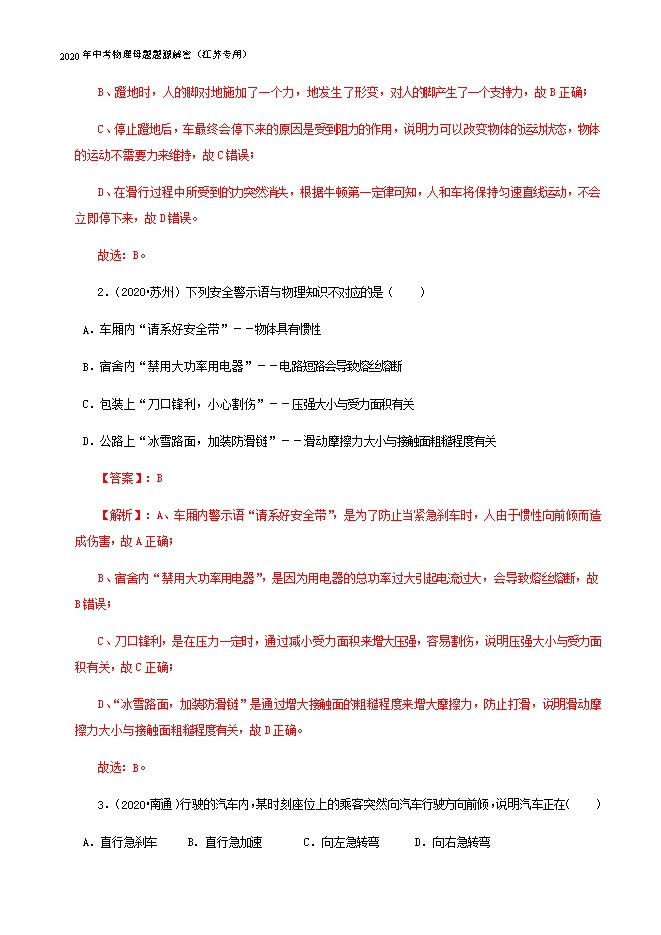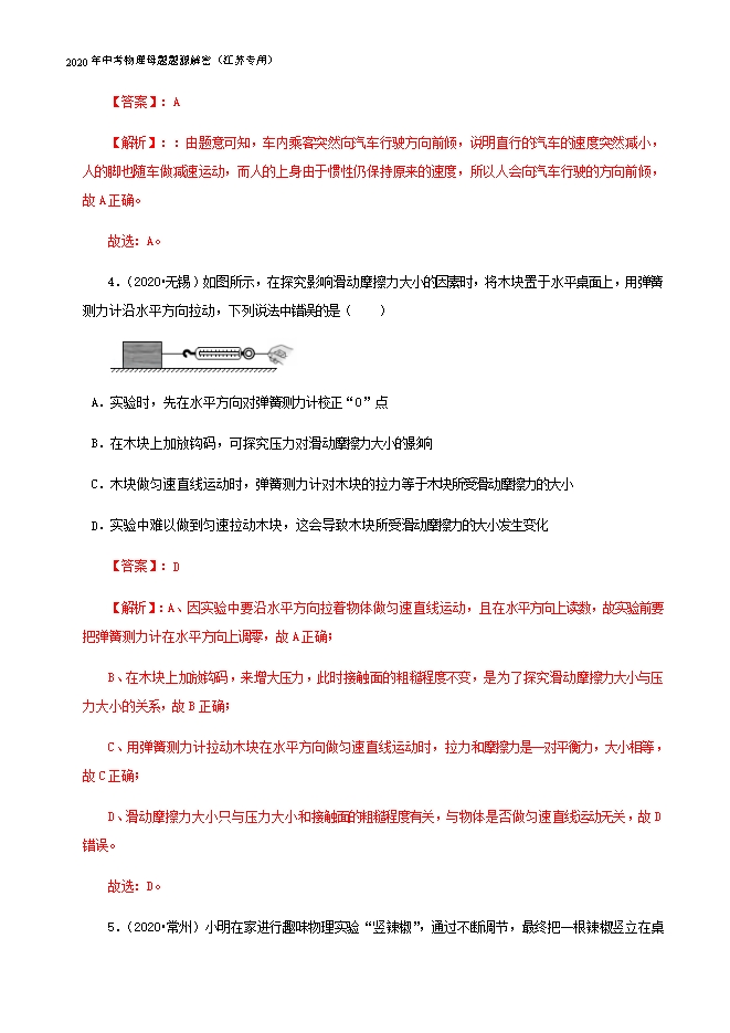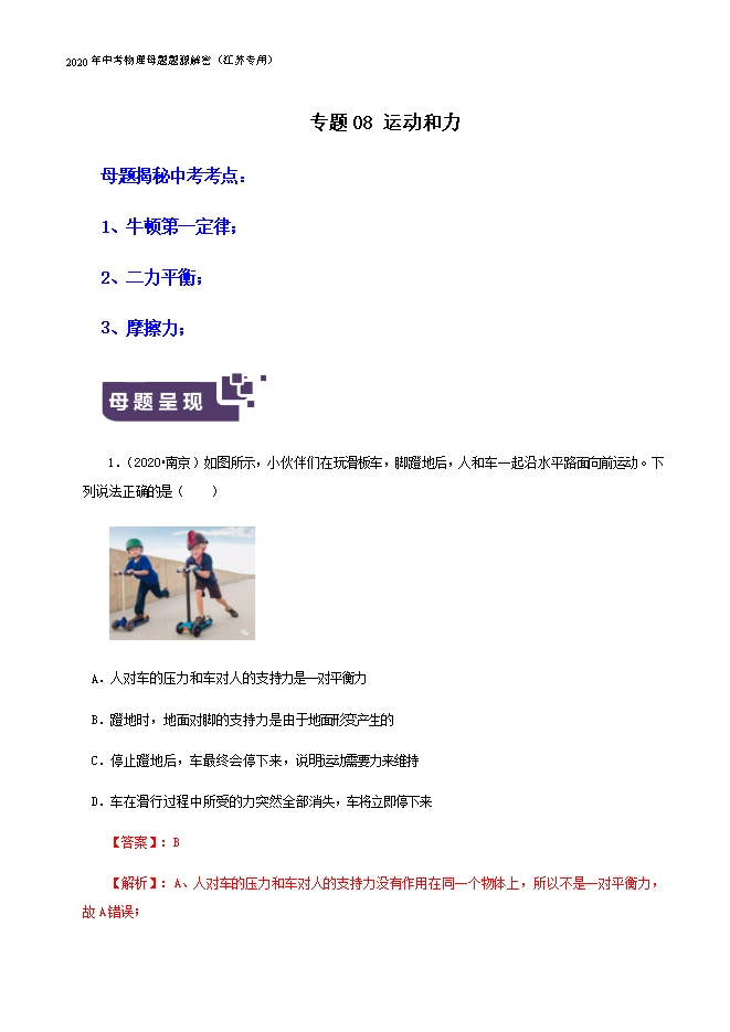 - 11302021年中考物理一轮复习江苏省13大市真题模考题汇编:专题07 从粒子到宇宙