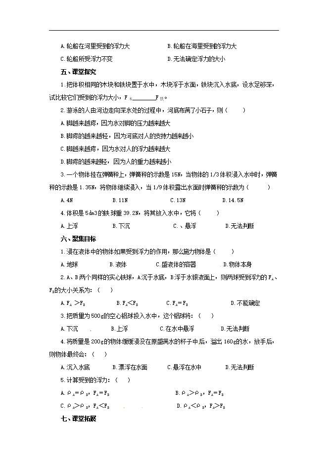 - 3242019-2020沪科版物理八年级下册跟踪训练:第九章 浮力(附解析答案)