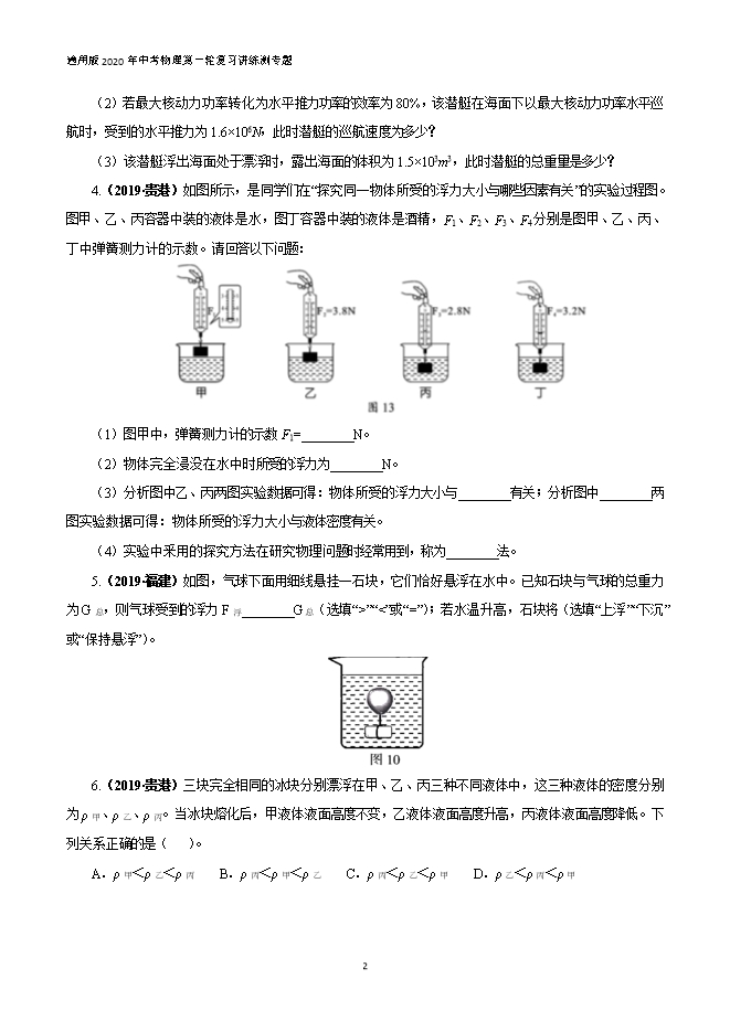 【内容简介】1.会:解答电路中电流与电压关系实验探究问题;解答电路中电流与电阻关系实验探究问题;利用欧姆定律变形公式解答问题;解答伏安法测电阻的相关问题;利用欧姆定律解决串并联电路的问题。2.理解:电路中电流与电压和电阻的关系;伏安法测电阻的原理;串并联电路中电流、电压和电阻规律;3.掌握:欧姆定律内容;应用欧姆定律解题。 1.(2019•邵阳)如图所示的电路中,电源电压恒定不变,已知R1=3R2,当S和S1闭合、S2断开时,电压表和电流表的示数分别为U1和I1;当S1断开、S和S2闭合时,电压表和电流表的示数分别为U2和I2,则U1:U2、I1:I2分别是()。 A.1:1、4:3 B.1:2、1:3 C.1:1、1:4 D.1:4、1:1【答案】A。【解析】当S1闭合、S2断开时,等效电路图如图1所示;当S1断开、S2闭合时,等效电路图如图2所示。 电源的电压不变,且两种情况下电压表测电源的电压,所以两次电压表的示数不变,即U1:U2=1:1;两电阻并联,I1,I2则I1:I2═4:3。故选A。