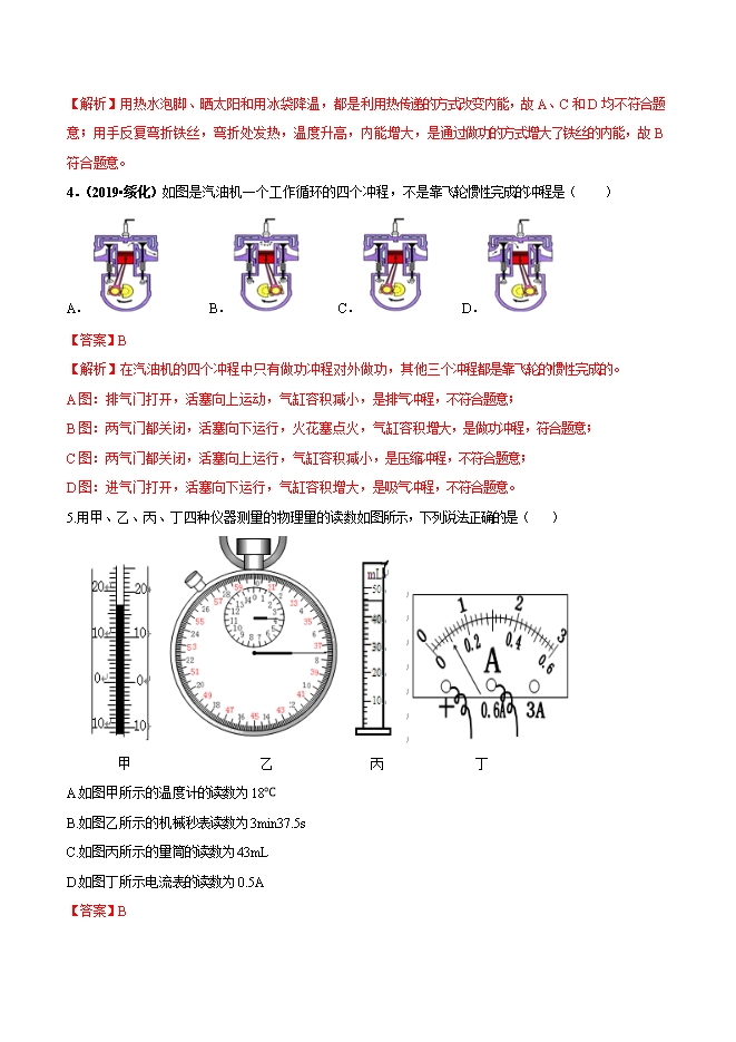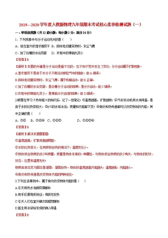 【内容简介】1.深圳市从3月23日起至6月底将实施最为严厉的“禁摩限电”政策,重点区域非法营运一律拘留,超标电单车发生重大交通事故生产、销售企业要担责。同时,4月1日起,电动三轮车上路被查的要被拘留。下列说法错误的是( )。A. 超标电单车行驶速度越大惯性越大发生重大交通事故可能性越大;B. 非法营运电单车载客行驶比没载客行驶时的惯性大;C. 电单车在水平路面匀速直线行驶时受到平衡力的作用;D. 电单车受到的重力与地面对它的支持力是一对平衡力【答案】A。【解析】A. 超标电单车行驶速度越大惯性越大发生重大交通事故可能性越大;此说法错误。电单车行驶速度大,它停下来越困难,但惯性和物体运动速度无关。故A得说法符合题意。B. 非法营运电单车载客行驶比没载客行驶时的惯性大;此说法正确。电单车载客行驶时,质量增大,惯性增大。故B的说法不符合题意。C. 电单车在水平路面匀速直线行驶时受到平衡力的作用;此说法正确。电单车在水平路面匀速行驶时,电单车处于平衡状态,它一定受到平衡力的作用。故C的说法不符合题意。D. 电单车受到的重力与地面对它的支持力是一对平衡力;此说法正确。电单车在竖直方向上没有产生路程,它在竖直方向上受到的力是平衡力。故D的说法不符合题意。2.正在行驶的汽车,如果作用在汽车上的一切外力突然消失,那么汽车将( )。A、立即停下来 B、先慢下来,然后停止 C、做匀速直线运动 D、改变运动方向【答案】C。【解析】物体原来运动,所以当外力消失时,它仍保持原来的运动状态不变,做匀速直线运动故C正确。故选C。