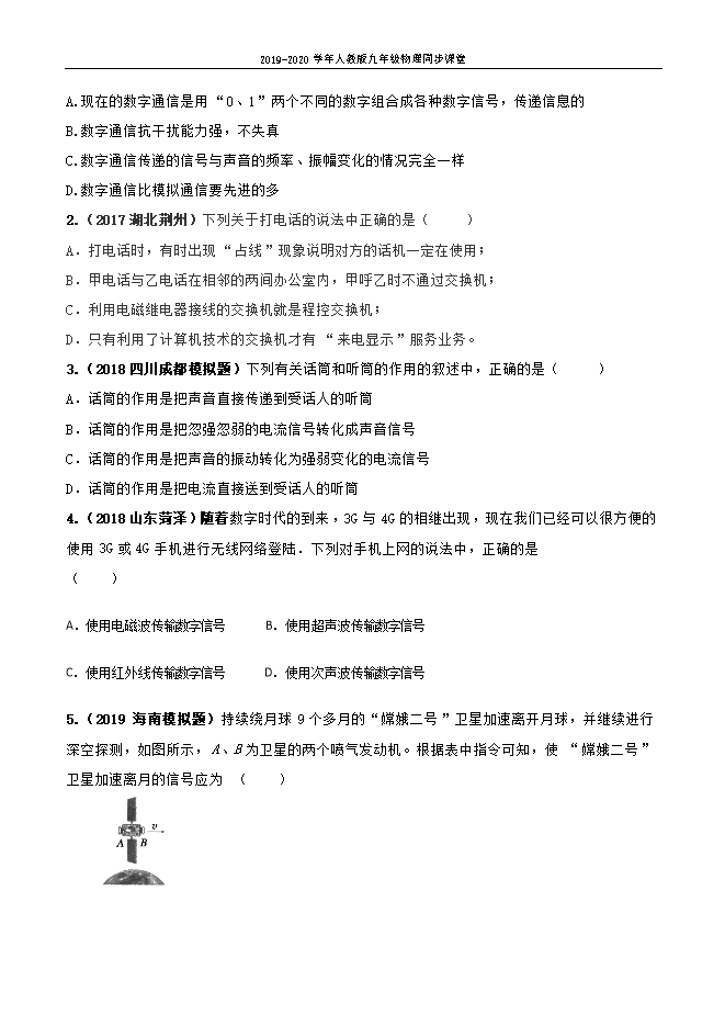 - 251【精品】2019-2020学年人教版九年级物理同步课堂:第21章 信息的传递(单元总结与单元测试)
