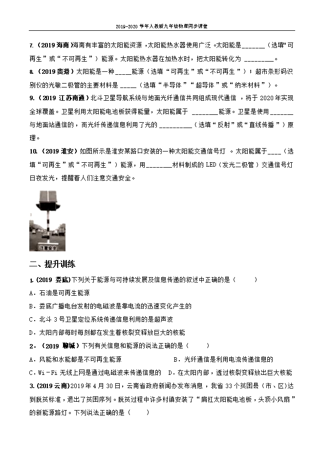- 1060【七彩课堂】2020秋九年级物理课堂教学资源:第二十二章第3节 太阳能