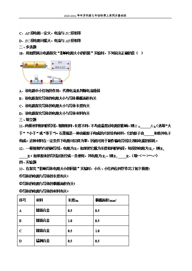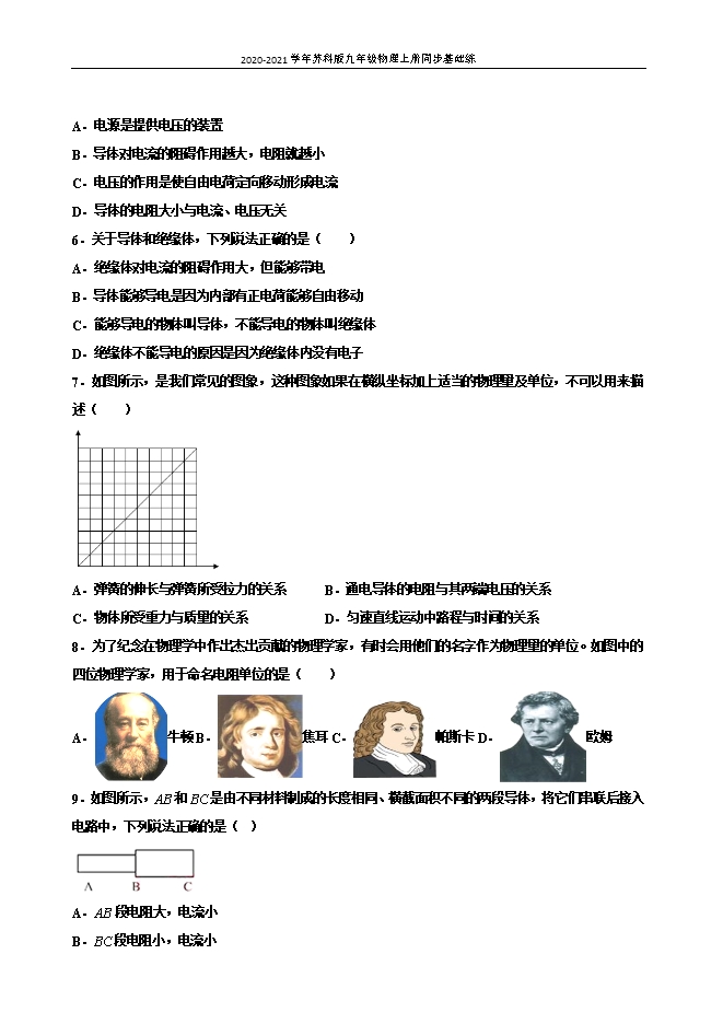 【内容简介】一、选择题1.(2020•湖北省黄石市阳新县陶港中学中考模拟)如图,一个鱼缸注满水,另一个注满水的相同鱼缸中浮有一只“小船”,以下说法正确的是( )。 A、漂浮在鱼缸中的“小船”受到的浮力大于重力;B、把两个鱼缸分别放在台秤上,台秤的示数相同;C、往鱼缸中加一些盐,“小船”受到的浮力增大;D、有“小船”的鱼缸底受到的水的压强较大【答案】B。【解析】漂浮在鱼缸中的“小船”受力平衡,受到的浮力等于重力,选项A错误。由于两个鱼缸均注满水,根据阿基米德原理,漂浮在鱼缸中的“小船”排开的液体的重力等于自身重力,所以二者的总重力相等,把两个鱼缸分别放在台秤上,台秤的示数相同,选项B正确。往鱼缸中加一些盐,“小船”依然处于漂浮状态,前后小船受到的浮力都等于重力,是不变的,选项C错误。两个鱼缸中均注满水,水的深度相同,根据液体压强公式p=ρgh,鱼缸底部受到的水的压强相等,选项D错误。答案选B。2.(2020•湖北省黄石市阳新县陶港中学九年级四月份线上月考测试)潜水员在水面下继续向下潜水的过程中,关于潜水员所受的浮力和压强的大小,下列说法中正确的是( )。A、浮力变大,压强变大 B、浮力变大,压强变小C、浮力不变,压强变大 D、浮力不变,压强不变【答案】C。【解析】潜水员下潜的过程中,所处深度h增大,排开水的体积v排不变,因为p=ρ水gh,F浮=ρ水gv排,水的密度ρ水不变;所以他受到的压强变大,受到的浮力不变。故选C。3.(2020•江西省中等学校招生考试模拟)下列关于浮力的说法正确的是( )。A.浮力是物体对液体施加的力;B.空气中的物体不受浮力作用;C.浮力是液体(气体)对物体压力的合力;D.漂浮在水面的木块比沉在水底的铁球受到的浮力大【答案】C。【解析】浮力是物体受到液体或气体对它施加的力,故A错误;空气中的物体与液体中的物体一样,都可能受浮力作用,故B错误;浮力实质是物体在液体或气体中上、下表面受到的压力差,即浮力是液体或气体对物体压力的合力,故C正确;如果漂浮在水面的木块排开水的体积比沉在水底的铁球排开水的体积小,那么漂浮在水面的木块比沉在水底的铁球受到的浮力小,故D错误。故选C。4.(2020•河南中考第一次质量预测)如图所示,压在杯底的乒乓球,上浮时会弹离水面。下列相关说法正确的是( )。 A.乒乓球弹离水面后上升,是由于受到水的浮力作用;B.乒乓球上浮过程中,水对杯底的压强先不变,后减小;C.乒乓球上浮过程中,受到的浮力始终不变;D.乒乓球1至4的过程中,杯子对桌面的压力保持不变 【答案】B。【解析】乒乓球离开水面后就不再受浮力,继续上升是由于惯性,故A错;乒乓球上浮过程中,水对杯底的压强先不变后减小,故B正确;应选B。乒乓球上浮过程中,在液面以下时,浮力不变,当有一部分开始露出水面时,所受的浮力开始变小,故C错;乒乓球上浮过程中,在1-3过程中杯子对桌面的压力不变;在4位置时,杯子对桌面的压力变小;故D错;故选B。5.(2020•北京市朝阳区中考模拟(延期开学网上考试)水平桌面上有甲、乙、丙三个完全相同的容器,装有不同的液体,三个完全相同的长方体A、B、C分别放入容器的液体中,静止时的位置如图所示,三个容器的液面相平。则下列说法正确的是 ( )。