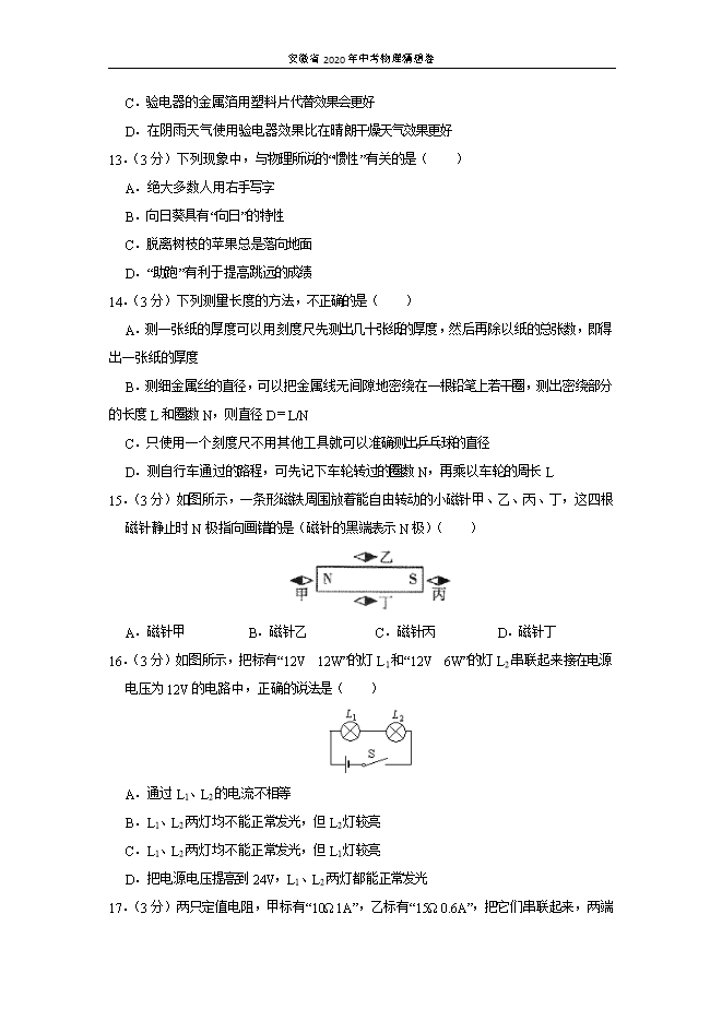 河南省2020年中考物理猜想卷(三)(原卷版和解析版)
