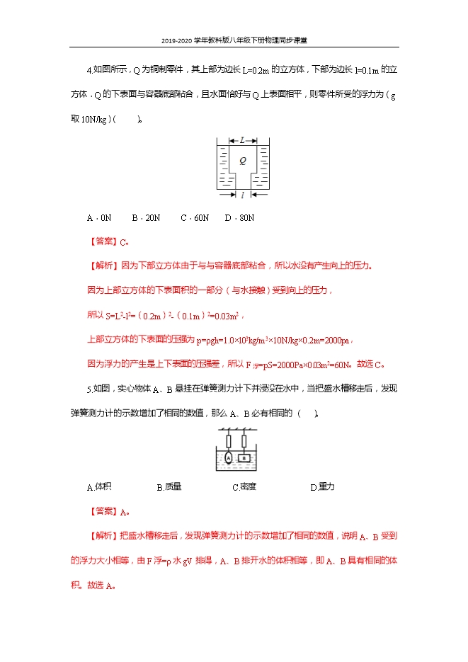- 272【暑假攻略】2020夏八年级物理核心素养特色专题:第十章《浮力》考点梳理word+ppt