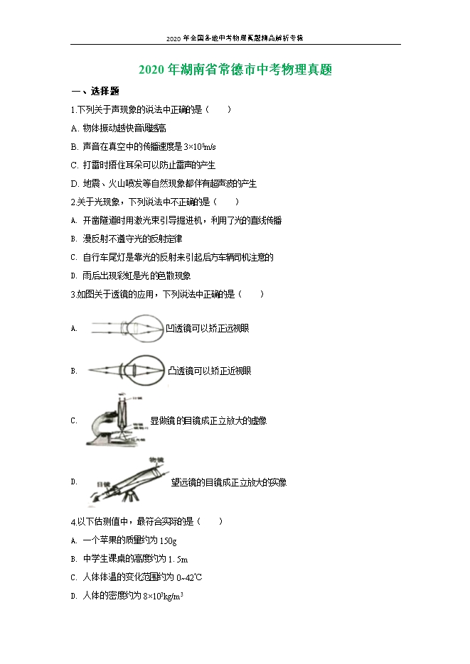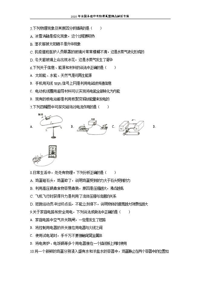 - 4912020年全国各地中考物理真题精品解析专辑:四川成都卷(word解析版和原卷版)