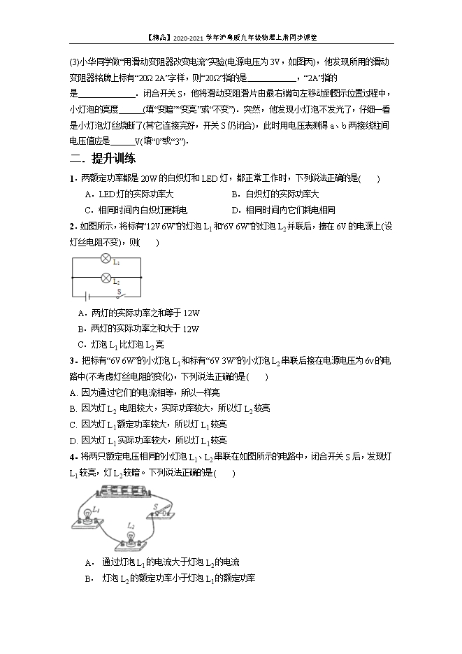 【内容简介】1.关于地球上的水循环,下列说法中正确的是 ( )A.水蒸气在高空遇冷放热凝华成小水珠B.在阳光下露珠吸热升华成水蒸气后慢慢消失C.积雪吸热熔化成水流入大海D.江河湖海中的水放热蒸发成水蒸气升腾至空中2.如图示四个实例中,与“雾凇”形成的物态变化相同的是( ) 3.如图所示是2019年春晚长春分会场的冰雕,一段时间后,冰雕没有熔化但会变小,这属于( ) A.液化现象 B.汽化现象C.升华现象 D.熔化现象4.利用干冰(固态二氧化碳)使运输中的食品降温,防止食品腐烂变质,这是应用了( )A.干冰熔化吸热 B.干冰升华吸热C.干冰液化放热 D.干冰凝华放热5.冻肉出冷库时比进冷库时要重,这是因为( )A.肉中的水会结冰 B.冷库内的水蒸气凝华附着在肉上C.肉中的冰会熔化 D.肉中的水会蒸发6.下列物态变化现象中,吸热的是( )A.秋天房顶上结霜 B.铁水被浇铸成工件C.冰棒冒出“白气” D.湿衣服晾晒后变干7.对图中物理现象的解释,正确的是( ) A.图甲中,霜的形成是凝固现象,放热B.图乙中,雪的形成是凝华现象,放热C.图丙中,雾的形成是汽化现象,吸热D.图丁中,露的形成是液化现象,吸热8.如图所示为水的三态之间转化过程所对应的物态变化名称,标注都正确的是 ( ) 9.如图所示,随着科技的发展,如今可以通过在空中喷撒干冰来进行人工降雨。关于人工降雨下列说法错误的是( )A.干冰升华吸热,使周围空气温度骤降B.空气中的小水珠变成小冰粒是凝固过程C.空气中的水蒸气变成小冰粒是凝华过程D.人工降雨中降落下来的雨水是干冰熔化形成的 10.为了证明碘升华,小壮同学使用的方法如图甲、乙所示,甲直接对试管加热,乙通过水浴法对试管加热,两试管中都出现了紫色烟雾。已知:碘的熔点是114 ℃、沸点是184.35 ℃;水的沸点是100 ℃;酒精灯火焰温度约为400 ℃。由上述信息判断( )