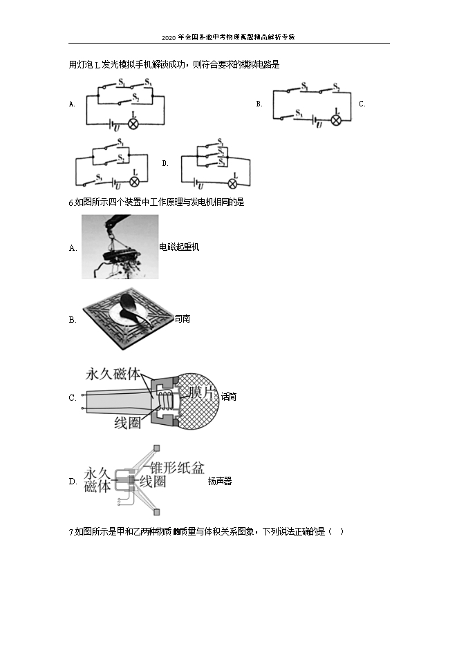 - 4912020年全国各地中考物理真题精品解析专辑:四川成都卷(word解析版和原卷版)