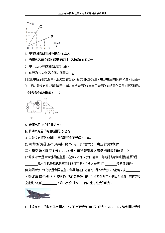 - 6442020年全国各地中考物理真题精品解析专辑:上海卷(word解析版和原卷版)