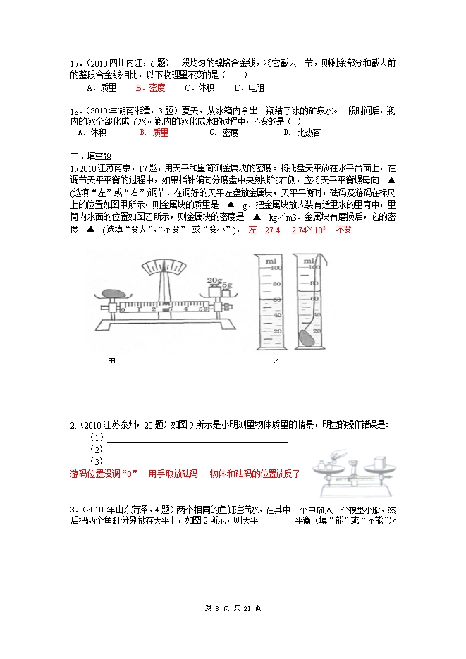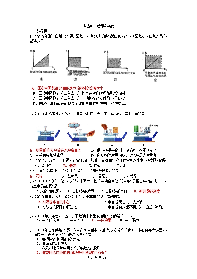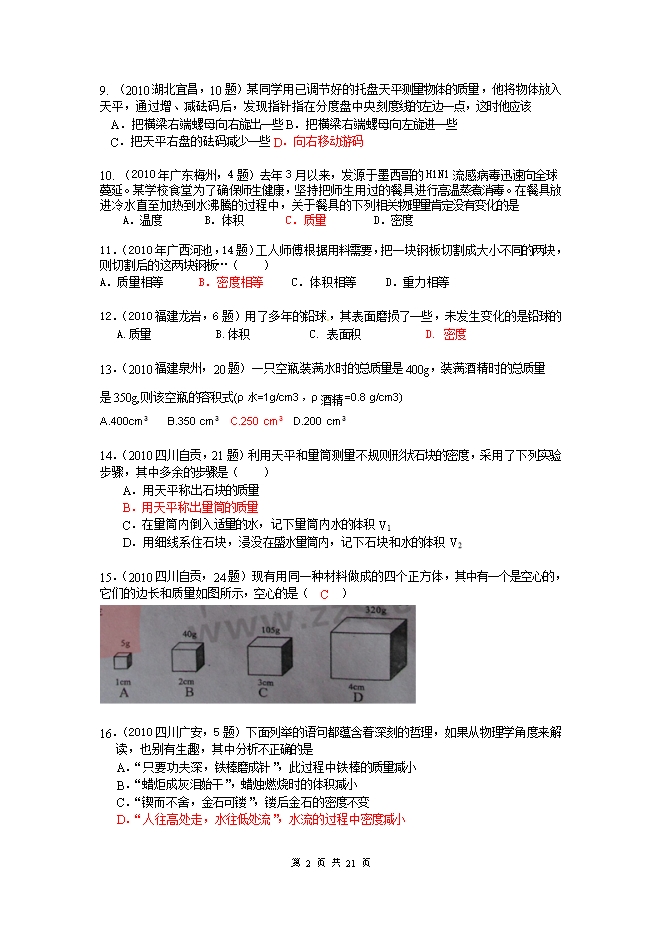 2010中考物理试题分类汇编(93套)专题九--电能 电功率