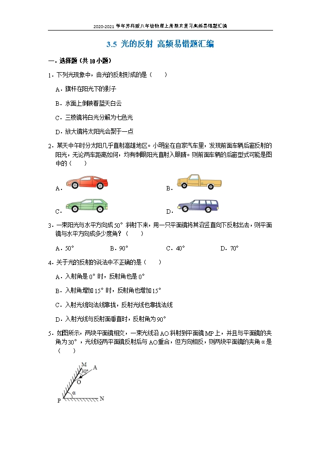 - 1412020-2021学年苏科版八年级物理上册期末复习高频易错题汇编:4.5 望远镜与显微镜(原卷版和解…