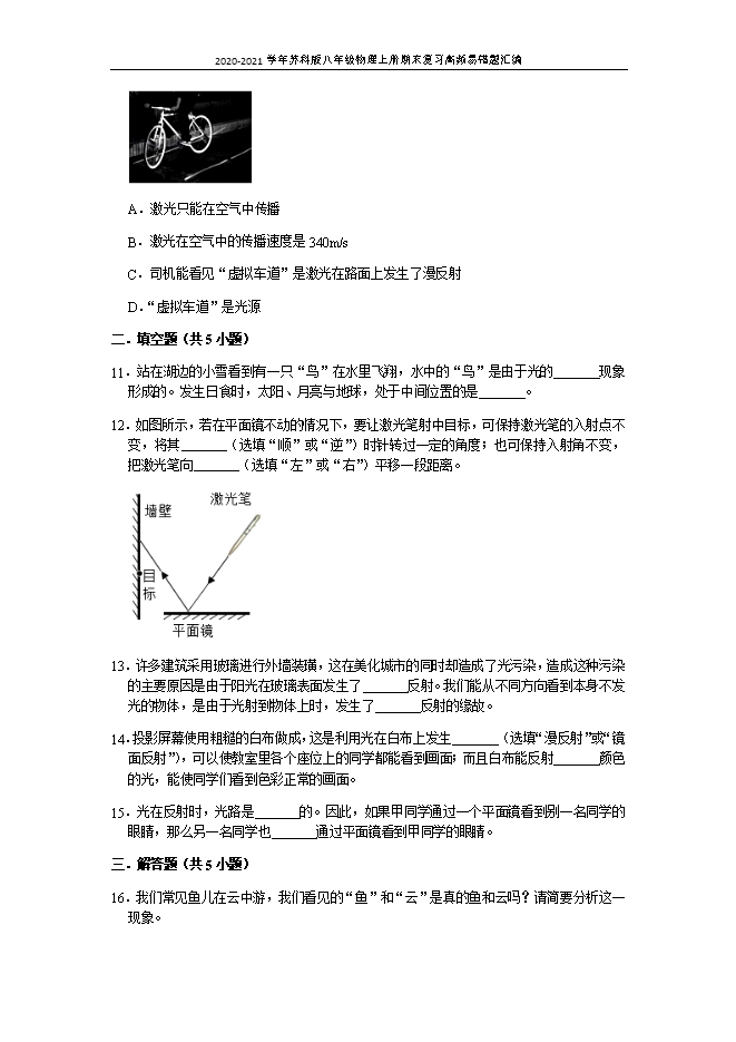 - 1942020-2021学年苏科版八年级物理上册期末复习高频易错题汇编:5.4 运动的相对性(原卷版和解析…