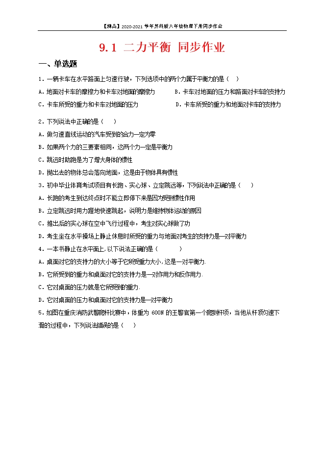 所属专辑: 【精品】2020-2021学年苏科版八年级物理下册同步备课课件与作业