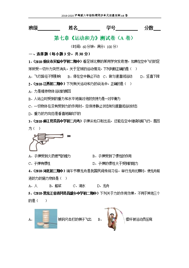 - 1020【精品】备战2021年中考物理实验精练精解专题:实验题20 探究“二力平衡条件”(原卷版和解析…