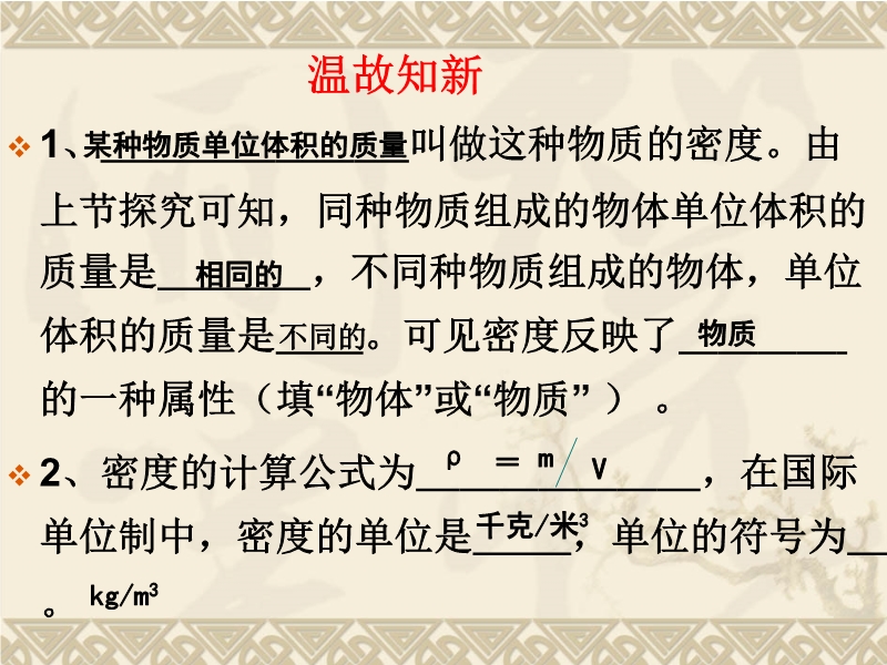 【内容简介】一、柱体转动一般情况下,是指柱形物体转动90º后,分析比较压强的变化情况。 1. 柱体旋转后,对水平面的压力F不变,受力面积S会发生变化,所以压强会变化。一般情况下,用P=F/S=mg/S 或P=ρgh分析。2. 压强的变化量ΔP=P2-P1= "F" /"S2 " -"F" /"S1 " = "F(S1- S2)" /"S1 S2 " 例题1.(2019上海中考题)如图2所示,长方体物块甲、乙置于水平地面上,物块和地面的接触面积分别为S、S'(S﹤S'),对地面的压强相等。将甲、乙均顺时针旋转90°,此时甲、乙和地面的接触面积分别为S'、S,对地面的压强分别为p甲、p乙。此过程中,甲、乙对地面的压强变化量大小分别为△p甲、△p乙,则( ) A.p甲<p乙,△p甲=△p乙B.p甲>p乙,△p甲=△p乙C.p甲>p乙,△p甲>△p乙 D.p甲<p乙,△p甲<△p乙【答案】D。【解析】(1)甲、乙的底面积分别为S、S'(S<S'),甲、乙压强相等,根据F=pS,可以判断甲对水平地面的压力小于乙对水平地面的压力。甲、乙是长方体,当甲、乙顺时针旋转90°后,甲、乙的底面积分别为S'、S,甲的受力面积增大,甲对水平地面的压力不变,甲对水平地面的压强减小;乙的受力面积减小,乙对水平地面的压力不变,乙对水平地面的压强增大,由于原来甲乙对水平地面的压强相等,所以旋转后甲对水平地面的压强小于乙对水平地面的压强,即P甲<P乙。(2)甲、乙对地面的压强变化量ΔP=P-P'= "F" /"S " -"F" /"S' " = "F(S'- S)" /"S S' " 因为面积变化"(S'- S)" /"S S' " 相同,甲对地面的压力小于乙对地面的压力,所以甲对水平地面的压强变化量小于乙对地面的压强变化量即△p甲<△p乙。故选D。【变式训练1】(2020虹口一模)如图4所示,形状、体积相同的长方体甲、乙置于水平地面,对地面的压力分别为F甲、F乙,将它们顺时针旋转90°,此时甲、乙对地面的压强分别为 p甲′、p乙′,对地面压强的变化量分别为Δp甲、Δp乙。若Δp甲>Δp乙,则( ) A.F甲>F乙,p甲′>p乙′ B.F甲>F乙,p甲′<p乙′C.F甲<F乙,p甲′>p乙′ D.F甲<F乙,p甲′<p乙′【答案】A【解析】①长方体甲、乙形状、体积相同,设甲原来与地面的接触面积为S大,顺时针旋转90°后与地面的接触面积为S小,则乙原来与地面的接触面积为S小,顺时针旋转90°后与地面的接触面积为S大,甲对地面压强的变化量为△p甲=P-P'= "F甲" /"S 大" -"F甲" /"S小 " = "F甲(S大- S小)" /"S大 S小 " 乙对地面压强的变化量为△p乙=P-P'= "F乙" /"S 大" -"F乙" /"S小 " = "F乙(S大- S小)" /"S大 S小 " ②若△p甲>△p乙,即"F甲(S大- S小)" /"S大 S小 " >"F乙(S大- S小)" /"S大 S小 " ,则F甲>F乙;顺时针旋转90°后,甲对地面的压强为 p甲′="F甲" /"S小 " ,乙对地面的压强为 p乙′="F乙" /"S大 " ,因为F甲>F乙,S小<S大,故p甲′> p乙′。故选A。【变式训练2】(2020徐汇区二模) 如图3所示,长方体物块甲、乙置于水平地面上。两物块与地面的接触面积、对地面压强均相等。将两物块均顺时针翻转90o。此过程中,甲、乙对地面的压强变化量大小分别为∆p甲、∆p乙,则( ) A.∆p甲一定大于∆p乙 B.∆p甲可能等于∆p乙C.∆p甲一定小于∆p乙 D.∆p甲一定等于∆p乙【答案】B。【解析】①由于两物块与地面的接触面积、对地面压强均相等,根据F=PS可知,压力相等。根据p=ρgh可知,甲、乙密度的大小关系为ρ甲>ρ乙。②将两物块均顺时针翻转90o后,压力不变仍相等,但是受力面积不确定,根据p=F/S无法判断压强的大小,所以无法比较压强的变化量;根据P=ρgh,因为ρ甲>ρ乙,h甲<h乙。所以也无法分析判断压强变化量的大小情况,可能存在三种情况:∆p甲>∆p乙、∆p甲<∆p乙、∆p甲=∆p乙。 故选B。二、柱体切割柱体只切割不叠放:将甲、乙柱形物体沿水平(或竖直)方向切去某一厚度、体积或质量(如图)。 1. 可以用P=F/S 或 P=ρgh分析判断压强,根据题目给的已知条件选用;2. 变化的压强ΔP=ΔF/S=Δmg/S、ΔP=ρgΔh或ΔP=P原来-P后来等分析计算;3. 沿竖直方向切割,剩余部分(或切去部分)的压强不变。4. 变化的压力可以用ΔF=Δmg、 ΔF=ΔPS、 ΔF=mg/n(n为比例)或ΔF=F1-F2等分析计算。例题2.(2021上海市青浦区一模)均匀正方体甲、乙置于水平地面上,对水平地面的压强分别为p甲、p乙。现沿水平方向切去部分后,如图2所示,甲、乙剩余部分的高度和质量均相等。下列关于甲、乙的密度ρ甲、ρ乙和甲、乙正方体对水平地面的压强p甲、p乙大小的判断,正确的是( )