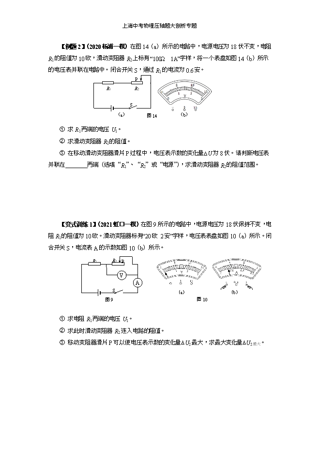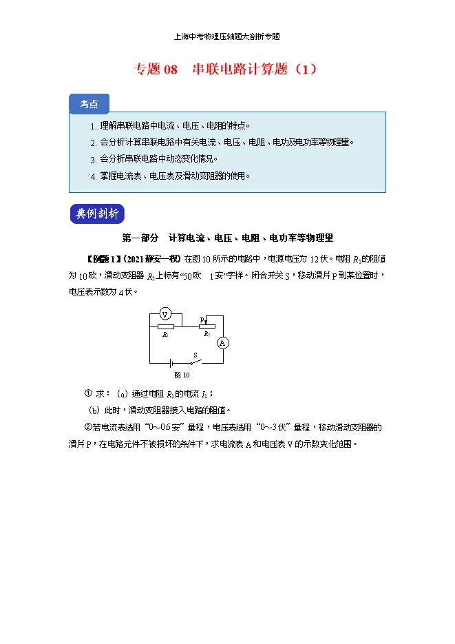 - 167上海中考物理压轴题大剖析专题:08 串联电路计算题(1)(原卷版和解析版)