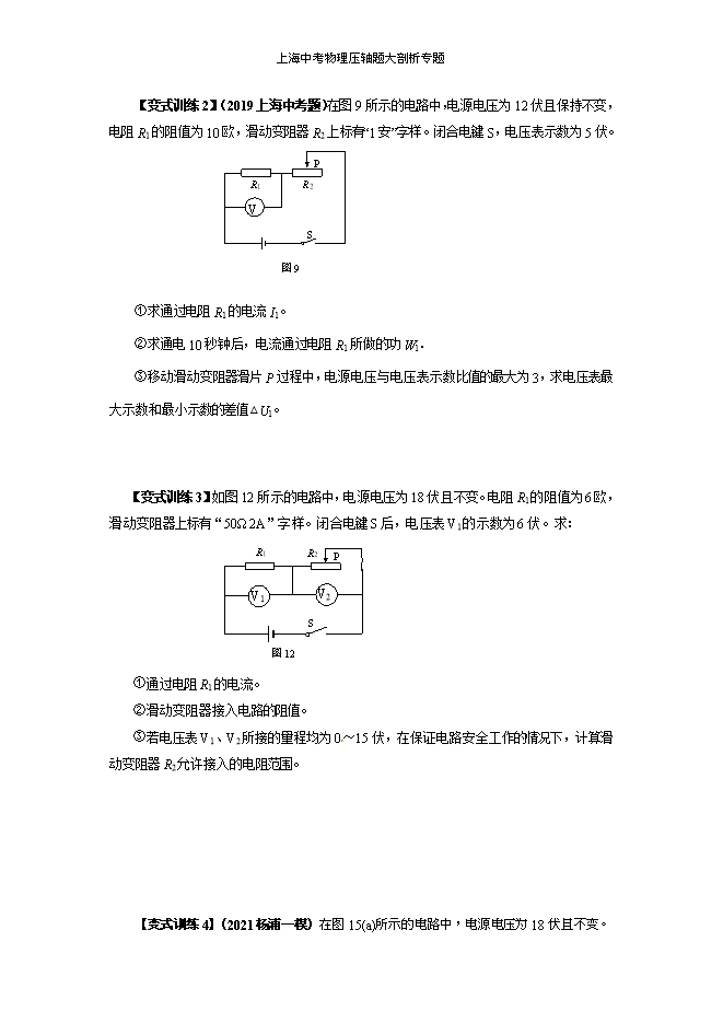 - 156上海中考物理压轴题大剖析专题:09 串联电路计算题(2)(原卷版和解析版)