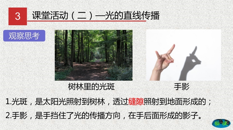 【内容简介】(2021•河北省初二期末)如图所示是小明一家游览黄果树瀑布时拍摄的照片.瀑布旁美丽的彩虹是光的______(填“色散”或“反射”)现象.远处传来的瀑布撞击岩石的声音,通过______传到小明的耳中.妈妈用遮阳伞遮挡阳光,能防止______(填“红外线”或“紫外线”)对人皮肤的侵害. 【答案】色散 空气 紫外线 【解析】[1]瀑布旁美丽的彩虹,这是太阳光通过悬浮在空气中细小的水珠折射而成的,白光经水珠折射以后,分解成各种彩色光,这种现象叫做光的色散.[2]固体、液体、气体都可以传播声音,听到的瀑布撞击岩石的声音,是通过空气传入小明耳朵的;[3]据紫外线的特点可知,适量的紫外线能合成维生素D,促使钙的吸收,但过量的紫外线对身体是有害的,有可能诱发皮肤癌;因此妈妈用遮阳伞遮挡阳光,能防止紫外线对人皮肤的侵害.8.(2021•四川省初二期末)如图,一束光透过三棱镜后会出现七色光带这种现象叫做光的____________,由此可知白光不是单色光。我们能看见红花,是因为红花________________(选填“反射”或“吸收”)红光。 【答案】色散 反射 【解析】[1]当太阳光经过三棱镜后,会分解成红、橙、黄、绿、蓝、靛、紫七种色光,这是光的色散现象。[2]不透明物体的颜色,由它反射的色光决定,看见红色的花朵,是因为红花反射红光的缘故。9.(2021•四川省初二期末)光在真空中的传播速度约为_____m/s,白光被分解成多种色光的现象叫光的_____.【答案】3×108 色散 【解析】光在真空中的传播速度为3×108m/s;白光被分解成多种色光的现象叫光的色散.10.(2021•江苏省初二期末)如图所示,一束太阳光通过三棱镜,光屏上出现彩色的光带,表明太阳光是由________混合而成的。放置在红光外侧的温度计示数明显升高,说明此区域存在_______ 。 【答案】多种色光 热效应较为显著的红外线 【解析】[1]太阳光经过三棱镜后被分解为红、橙、黄、绿、蓝、靛、紫等七种颜色的色光,这是光的色散现象,该现象表明太阳光是由多种色光混合而成的。[2]因为在红光外侧,存在红外线,人看不到红外线。放在该处的温度计经过红外线照射后,示数明显升高,说明红外线具有热效应。11.(2021•江苏省初二期末)太阳光经过三棱镜后分解为红橙黄绿蓝靛紫七色光,这种现象叫做光的______;红、蓝、________叫做光的三原色。【答案】色散 绿 【解析】[1]将太阳光通过三棱镜分成各种色光叫光的色散;[2]红、绿、蓝是光的三原色。