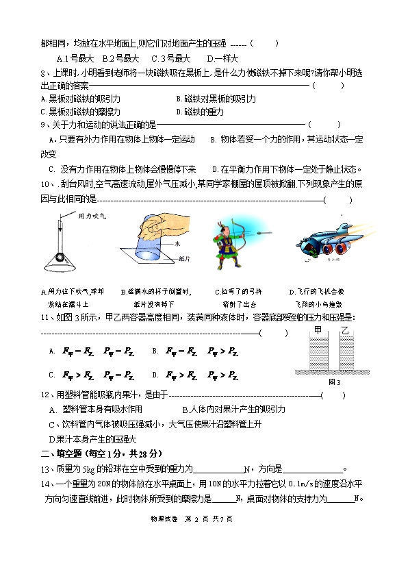 - 4482024-2025人教版八年级物理《第七章 运动和力》同步拓展提升及解析