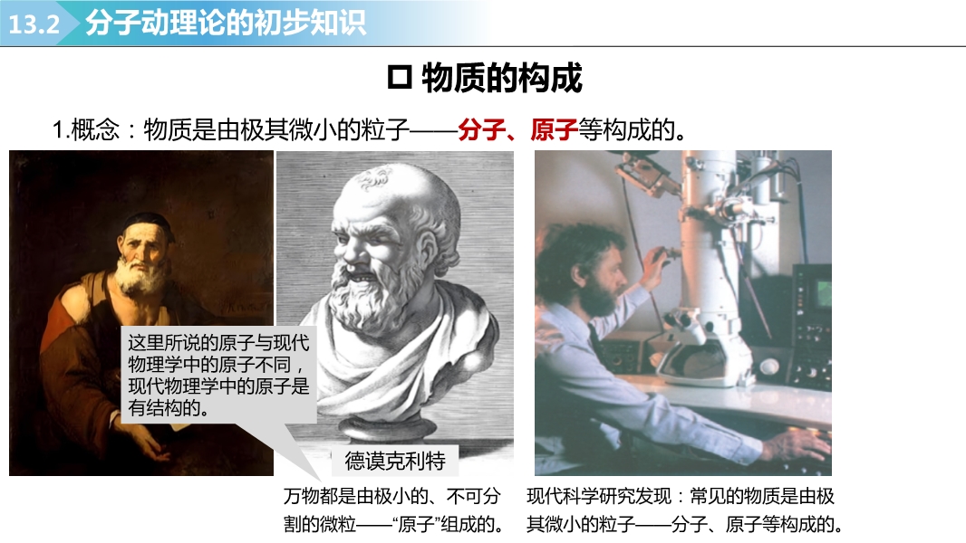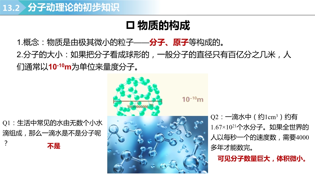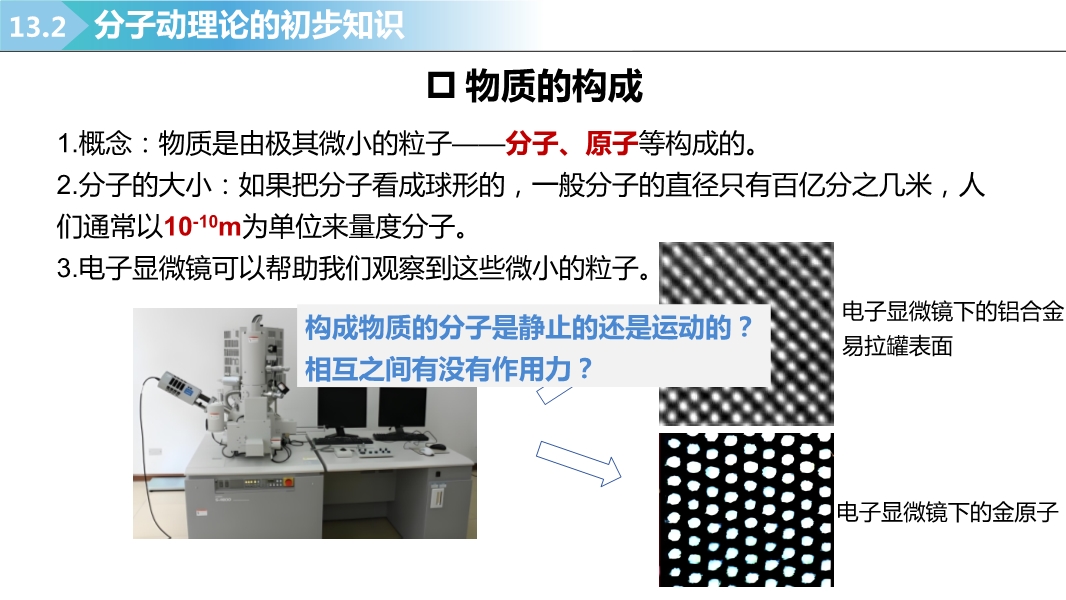 【内容简介】2025-2026学年新人教版九年级上学期物理课件:13.2分子动理论的初步知识
