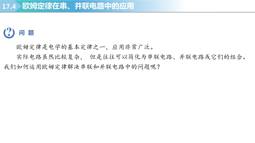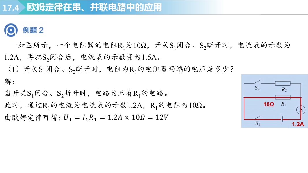 【内容简介】2025-2026学年新人教版九年级上学期物理课件:17.4欧姆定律在串、并联电路中的应用