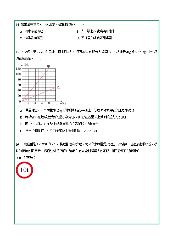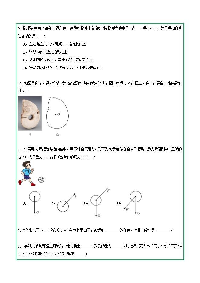 【内容简介】第七章 第三节 重力—2025-2026学年人教版物理八年级下学期预习基础知识填空(附答案)