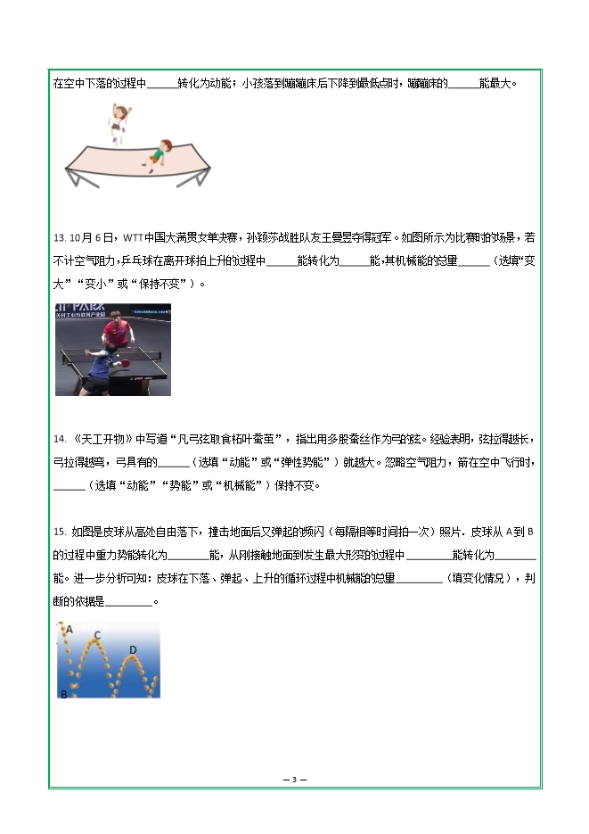 【内容简介】第十一章 第四节 机械能及其转化—2025-2026学年人教版物理八年级下学期预习基础知识填空(附答案)