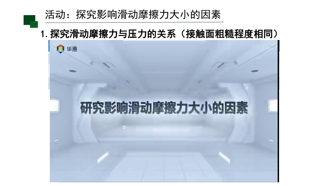 【内容简介】该课件围绕摩擦力展开,系统讲解摩擦力的概念、分类(静摩擦、滑动摩擦)、影响滑动摩擦力大小的因素(压力、接触面粗糙程度)及增大或减小摩擦的方法,通过汽车过石头路、小提琴涂松香等生活实例导入,结合体验活动、实验探究和问题链构建从现象到本质的知识脉络,为学生提供直观的学习支架。其亮点在于生活化导入激发兴趣,探究实验(如用控制变量法测量滑动摩擦力、分析接触面积影响的讨论)培养科学探究与科学思维能力,实例(琴弓涂松香、车轮缠铁链)助力物理观念形成。学生通过动手体验和实践练习提升应用能力,教师可借助丰富案例和可操作实验增强课堂互动,提高教学效果。