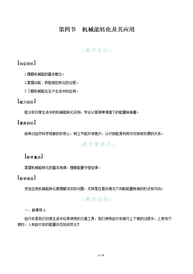 10.4 机械能转化及其应用--2026春沪科版八年级物理下册名师教学设计(附教学反思)