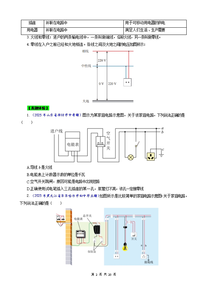 【内容简介】2026年中考物理模型与方法强化重难点专题训练:专题22.家庭用电 模型(学生版和教师版)