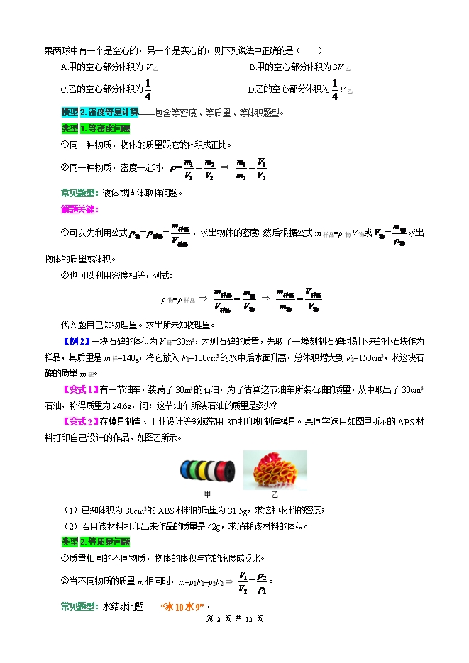 2026年中考物理模型与方法强化重难点专题训练:专题33.质量与密度模型(学生版和教师版)