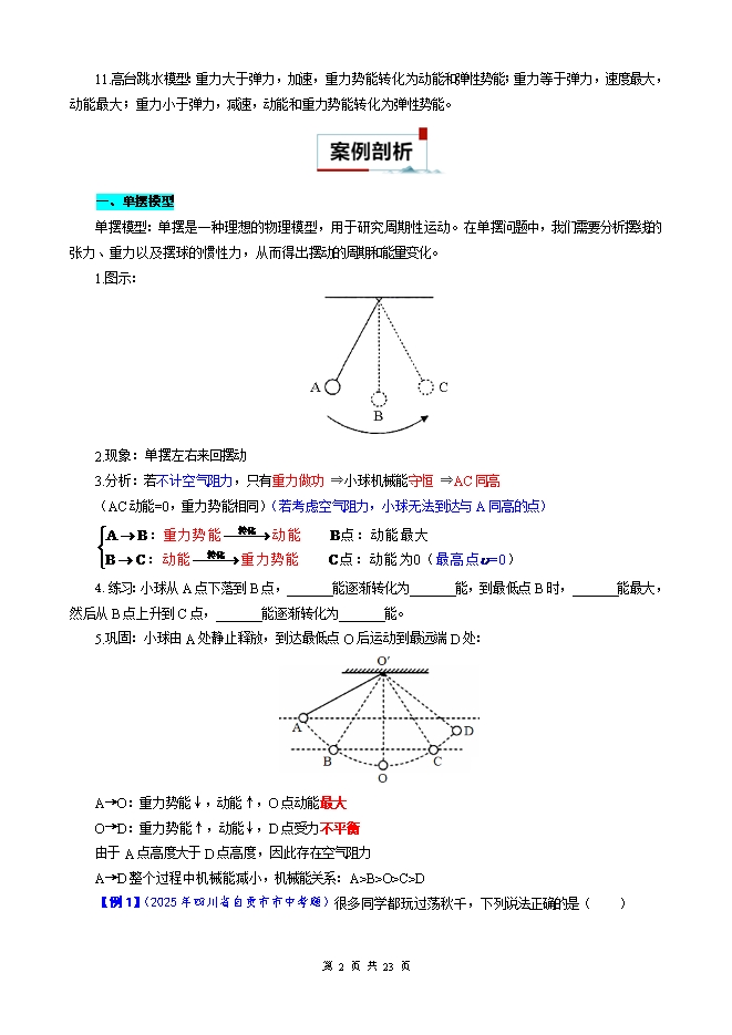 【内容简介】2026年中考物理模型与方法强化重难点专题训练:专题39.机械能转换模型(学生版和教师版)