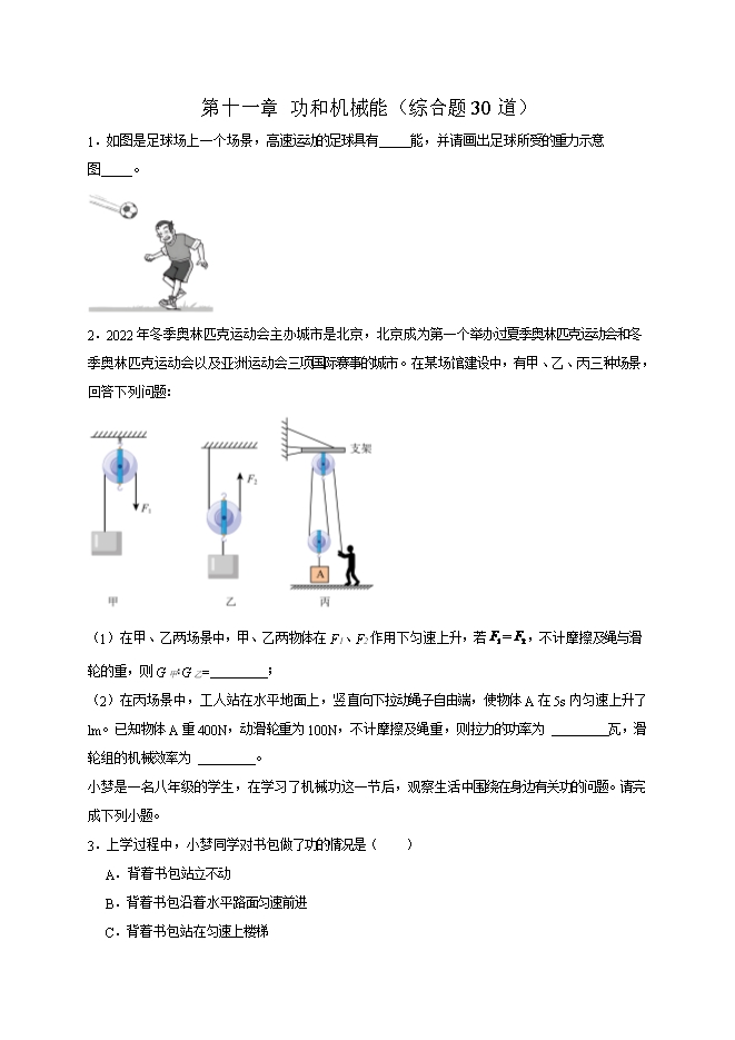 【内容简介】第十一章 功和机械能(综合题30道)--2025-2026学年人教版八年级物理全册热点题型专练