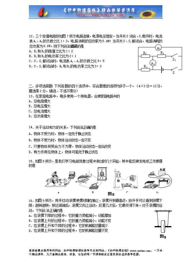 【内容简介】一、单项选择题(下列各小题均有四个选项 ,其中只有一个符合题意.共24分,每小题2分)
