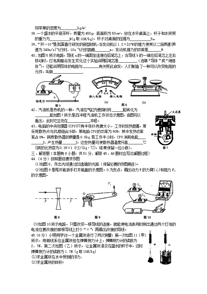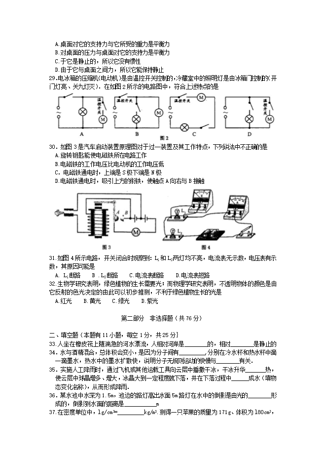 南京市2012年初中毕业生学业考试物理试题及答案(扫描版)