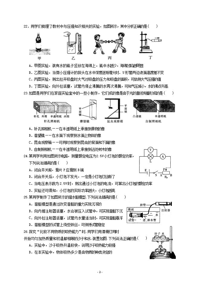 - 26512015年四川省绵阳市高中阶段招生实验操作考试试题及评分标准(PDF版)