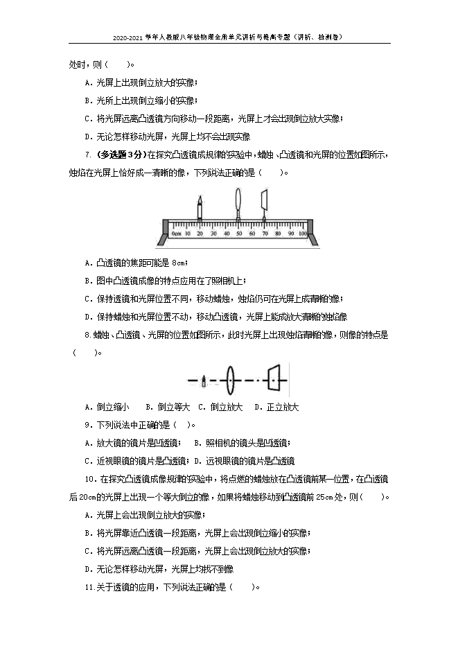 7.某同学面对高墙后退,边退边向高墙喊话,当他达到某位置时起能听到自己喊话的回声,若人耳能分辨原声和回声的时间间隔为1/15s ,这时人离墙的距离是 m。