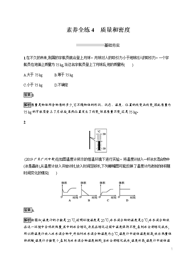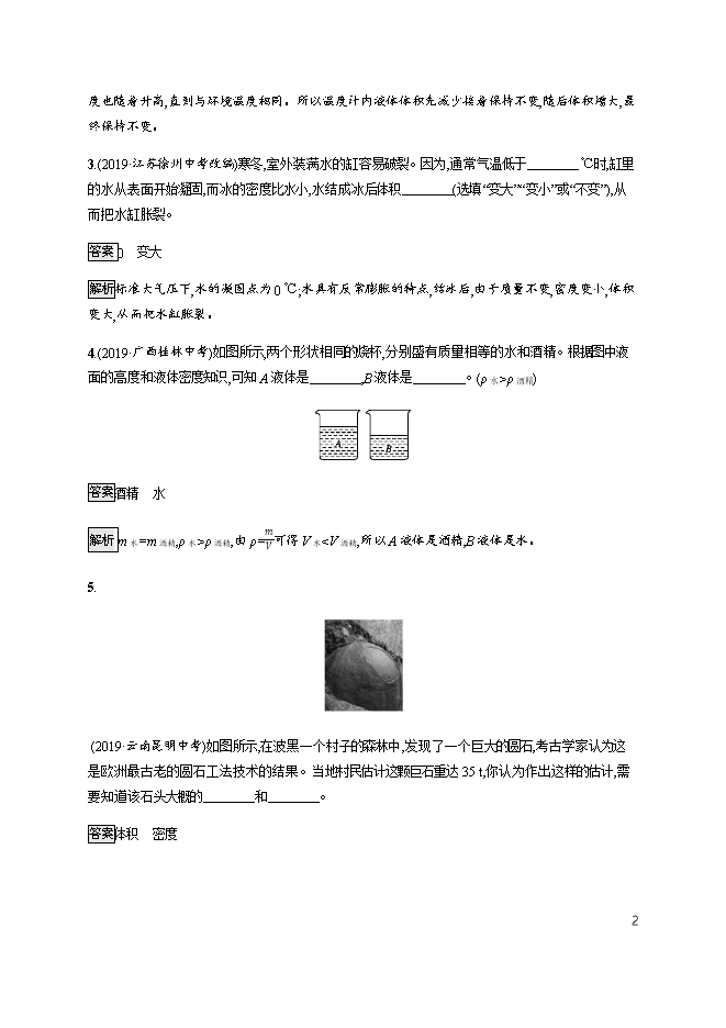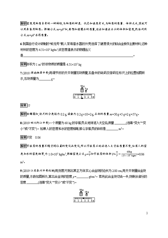 - 2282021年全国中考物理真题分类汇编专题:06 质量和密度(配解析)
