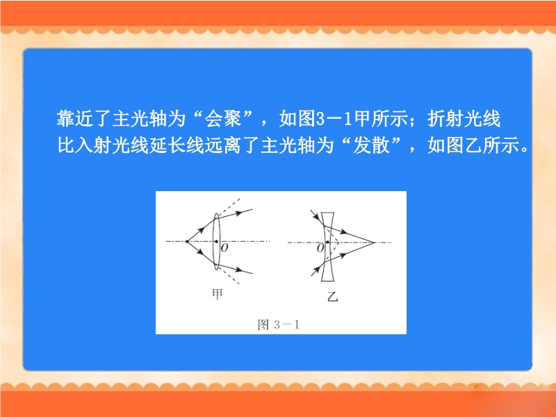 3.认识凸透镜的会聚作用和凹透镜的发散作用,会完成光路图。