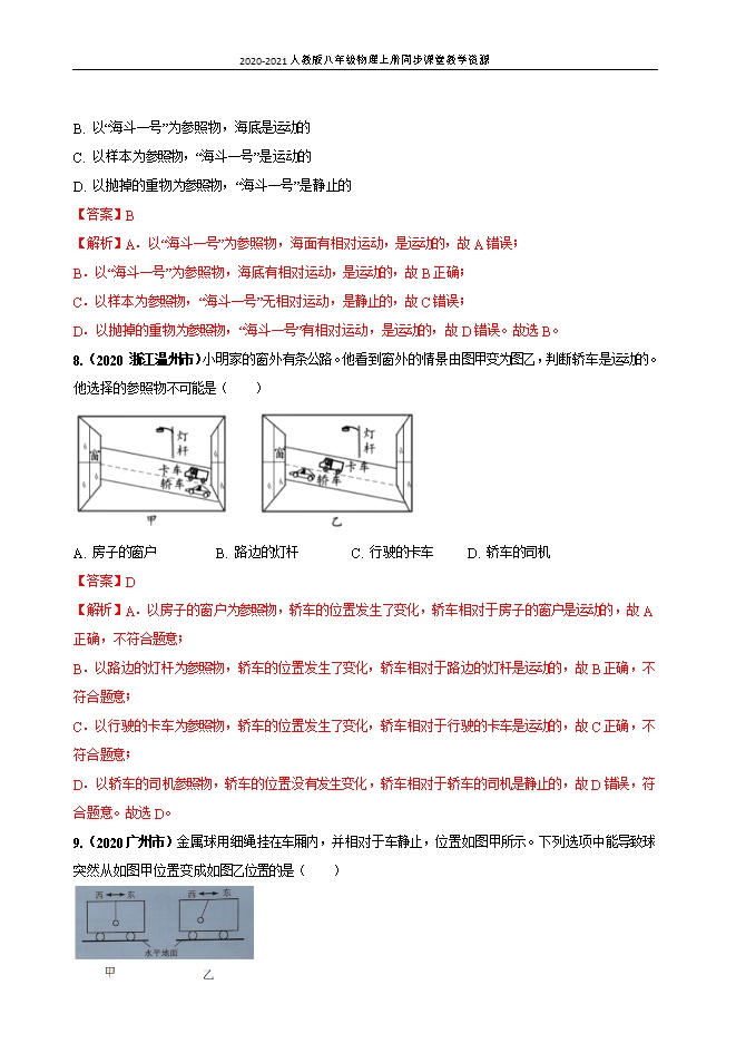 A.打开香水瓶盖后,满屋充满香水味 B.衣箱里的樟脑块不断变小,箱内充满樟脑味