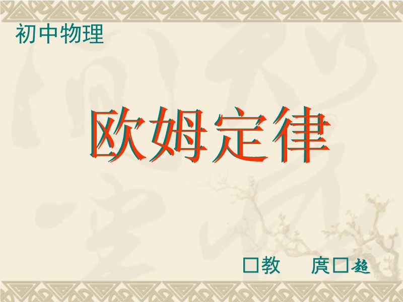 【内容简介】课件来自教学一线骨干教师根据新课标精神制作的《欧姆定律(人教版)》Powerpoint课件.