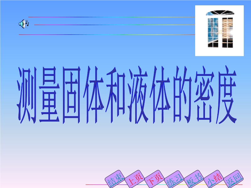 人教新课标第十一章多彩的物质世界中《测量物质的密度》PPT教学课件;本课件重点介绍了测量固体密度和液体密度的原理和方法,并配有适当的练习加以巩固,非常不错的呵!